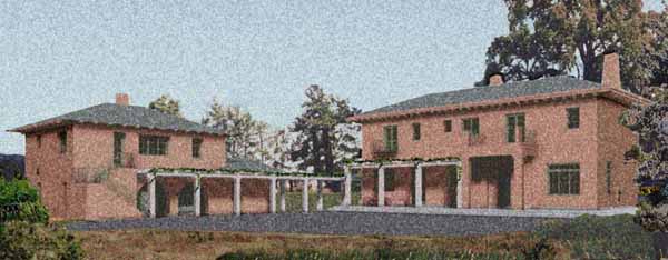 With the Calistoga residence we also used computer-generated models to study the relationship of the exterior loggia to the site and buildings. We wanted to get a sense of what it might feel like to be under the loggia. Using the computer we are able to generate accurate shadow studies. This was very useful in a way we had not expected. Through these studies we began to see that the loggia was too massive and heavy for the building and the site. We reduced it significantly in size and extended the lighter wood trellis. With these computer models we also made some preliminary studies of the exterior finish colors for the metal roof and the plaster walls. We were required to submit this for design review with the city of Calistoga. Of course, the final material selections will be made on site during construction.
