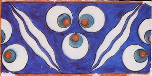 I am particularly struck by the power of the hand painted Turkish tiles from the 15th to 18th centuries. The cintemani pattern on the left and the lightening tile pattern on the right, are especially resonant, with their dynamic drawing and intense cobalt blue glaze. They both have the quality of life in an apparently inanimate object. |